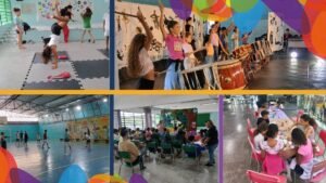 As famílias riem juntas em oficinas de dança, se ajudam nas aulas de artesanato e competem com leveza em jogos esportivos. Esses momentos em família fortalecem a comunidade porque criam laços de afeto, respeito e parceria entre as gerações.