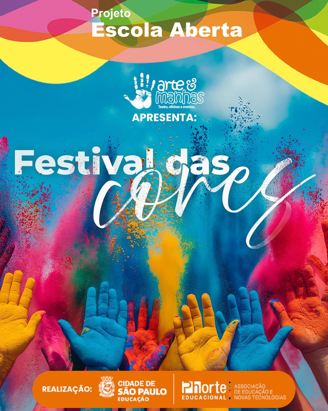A atividade propõe uma experiência sensorial e lúdica com o uso de pó colorido biodegradável e seguro (marca Zim), explorando a mistura das cores primárias e a criação de novas tonalidades. O ponto alto será o grande momento coletivo de lançamento das cores ao ar, acompanhado de música animada e interação entre os participantes.